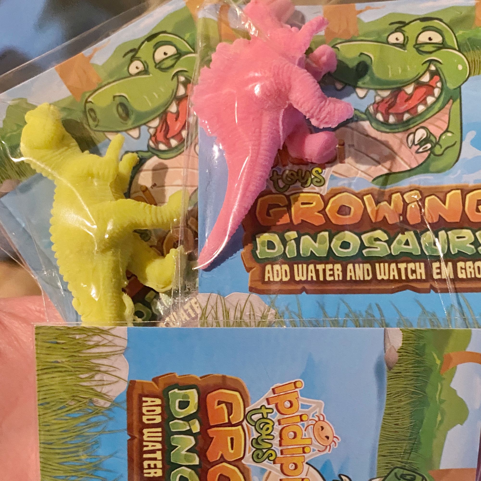 We used these for multiple things - goodie bag, cupcake toppers, and froze some in ice to make "dino eggs."