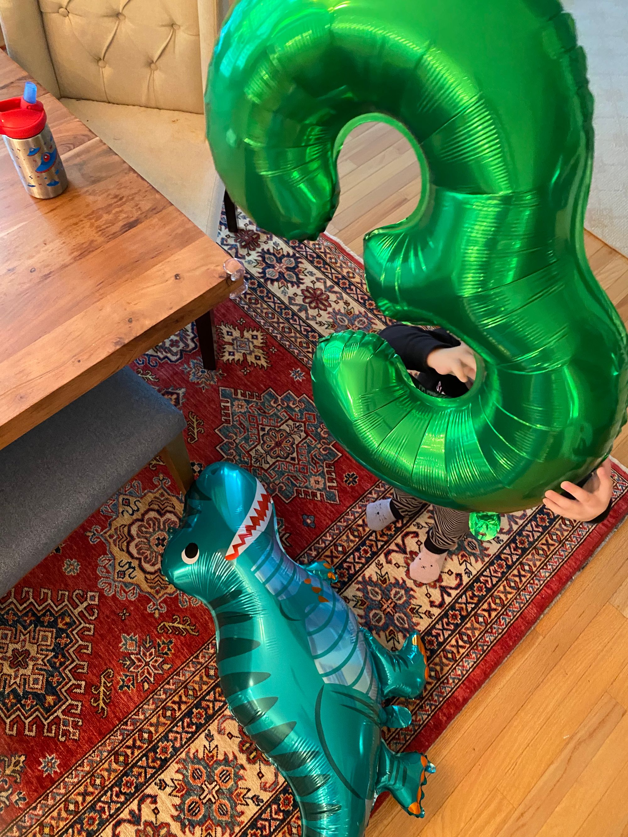 For Michael's third birthday, I went with a dinosaur theme. Since we're living through a pandemic, we kept things small (three little buddies we see every week), and I set up all the decorations myself. Linking the items I used, and some photos captures below!
