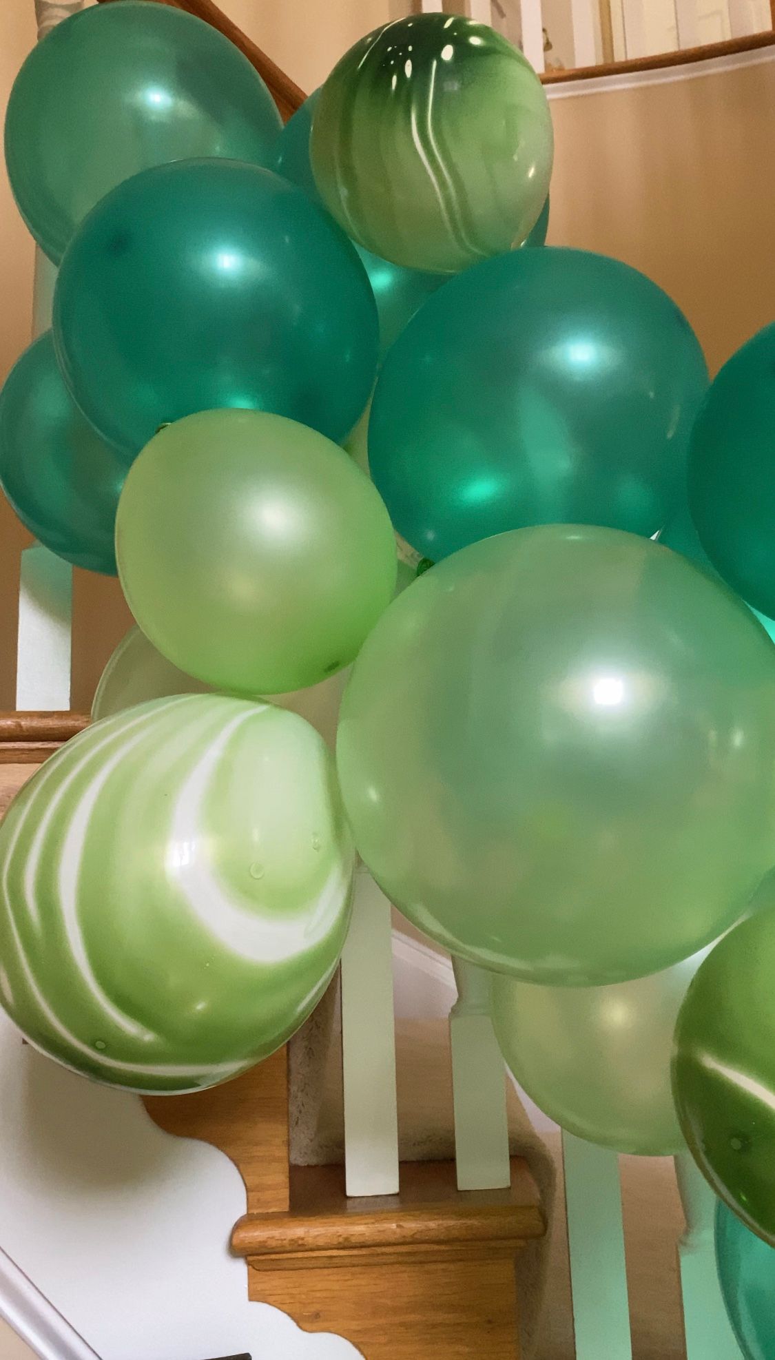 Great collection of dinosaur balloons, balloons for a garland, simmer backdrop, and banner. The only thing you need is the garland strip.
